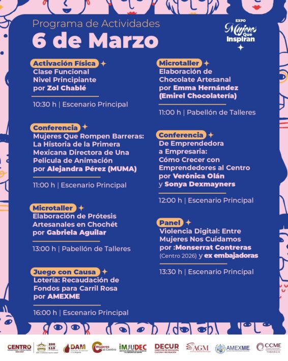 El 6 de marzo, la agenda transita hacia la ejecución y la innovación técnica. Un hito destacable es la participación de Alejandra Pérez (MUMA) con la conferencia “Mujeres Que Rompen Barreras: La Historia de la Primera Mexicana Directora de Una Película de Animación”. Este caso de éxito no solo inspira, sino que valida el potencial del talento tabasqueño en sectores de alta tecnología y exportación creativa.