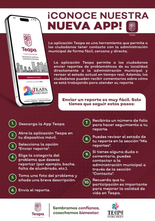 Con esta herramienta, el Ayuntamiento de Teapa no solo busca fortalecer los lazos con su comunidad, sino también establecer un modelo de gestión pública proactiva y transparente. La capacidad de los ciudadanos para interactuar de manera directa y efectiva con su gobierno, sumado al compromiso de la administración de llevar un control real sobre el progreso de las solicitudes, augura una etapa de mayor dinamismo y participación en la vida pública de Teapa. Este esfuerzo refuerza el compromiso con la confianza y el bienestar, pilares fundamentales para el crecimiento y desarrollo del municipio.
